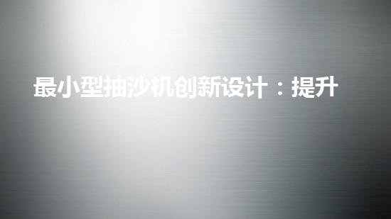 最小型抽沙機創新設計:提升效率的抽沙設備如何改變產業格局?